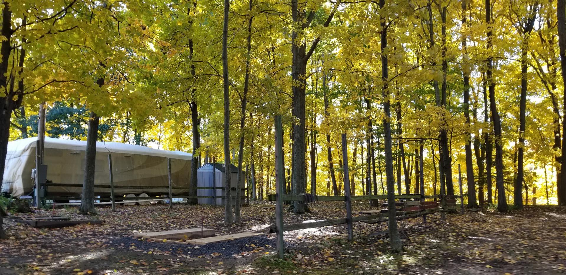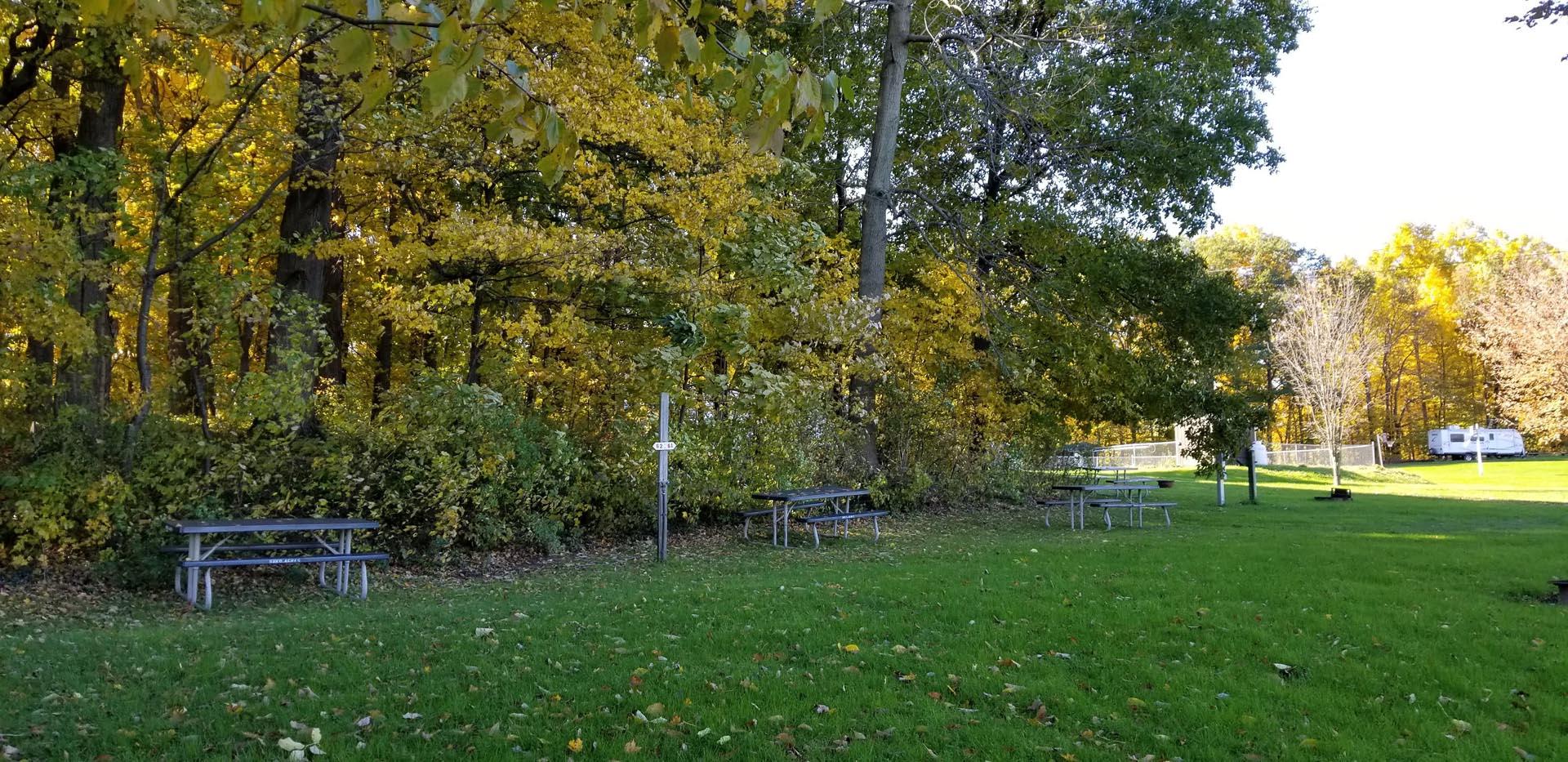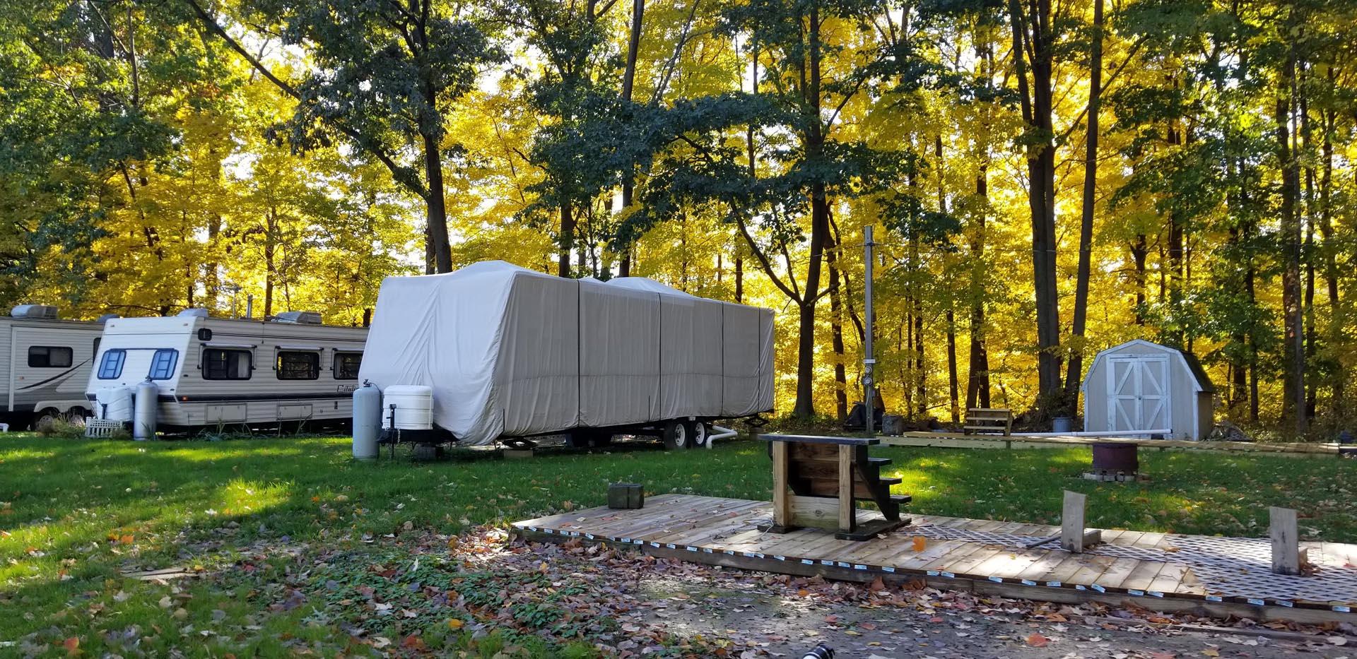 RVs along the tree line